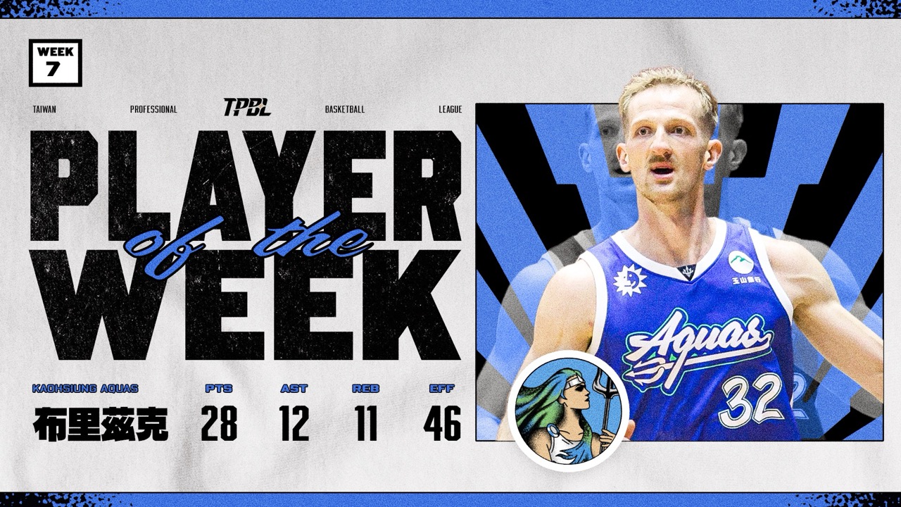 高雄全家海神洋將布里茲克(Bogdan Bliznyuk)以其全能身手與卓越的團隊貢獻,成功帶領球隊終結六連敗低潮,榮獲TPBL例行賽第七週單週最有價值球員(MVP)。布里茲克展現了球隊引進他時所期望的「關鍵拼圖」價值,他不是單純的個人得分機器,而是透過組織與全面數據,將團隊戰力最大化,進而贏得這場關鍵勝利。