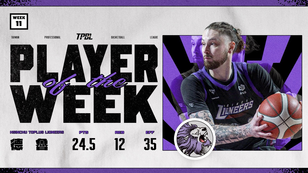 新竹御嵿攻城獅全能前鋒德魯(Drew Pember)憑藉場均 24.5 分、12 籃板、3.5 助攻、2 抄截、2.5 阻攻,以及傲視群雄的 35 效率值,榮膺單週最有價值球員(MVP)。德魯不僅在進攻端展現多元得分手段,更在防守端化身為球隊的守護神,帶領攻城獅在上週接連擊敗強敵桃園台啤永豐雲豹與新北國王。