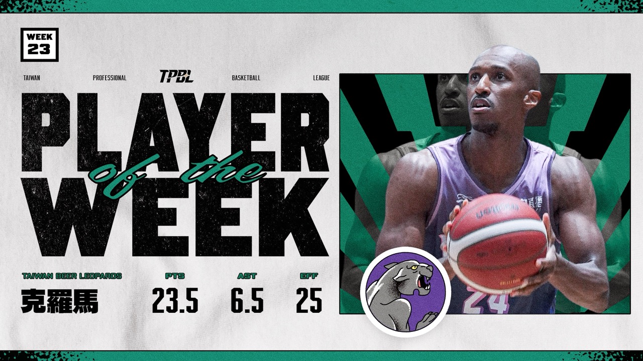 TPBL第二十三週單週最有價值球員(MVP)由克羅馬拿下。桃園台啤永豐雲豹上週末於主場接連迎戰高雄全家海神與臺北台新戰神,在對手皆無退路、全力搶勝的情況下,克羅馬以穩定且全面的表現帶領球隊收下二連勝,並獲選為本週MVP。